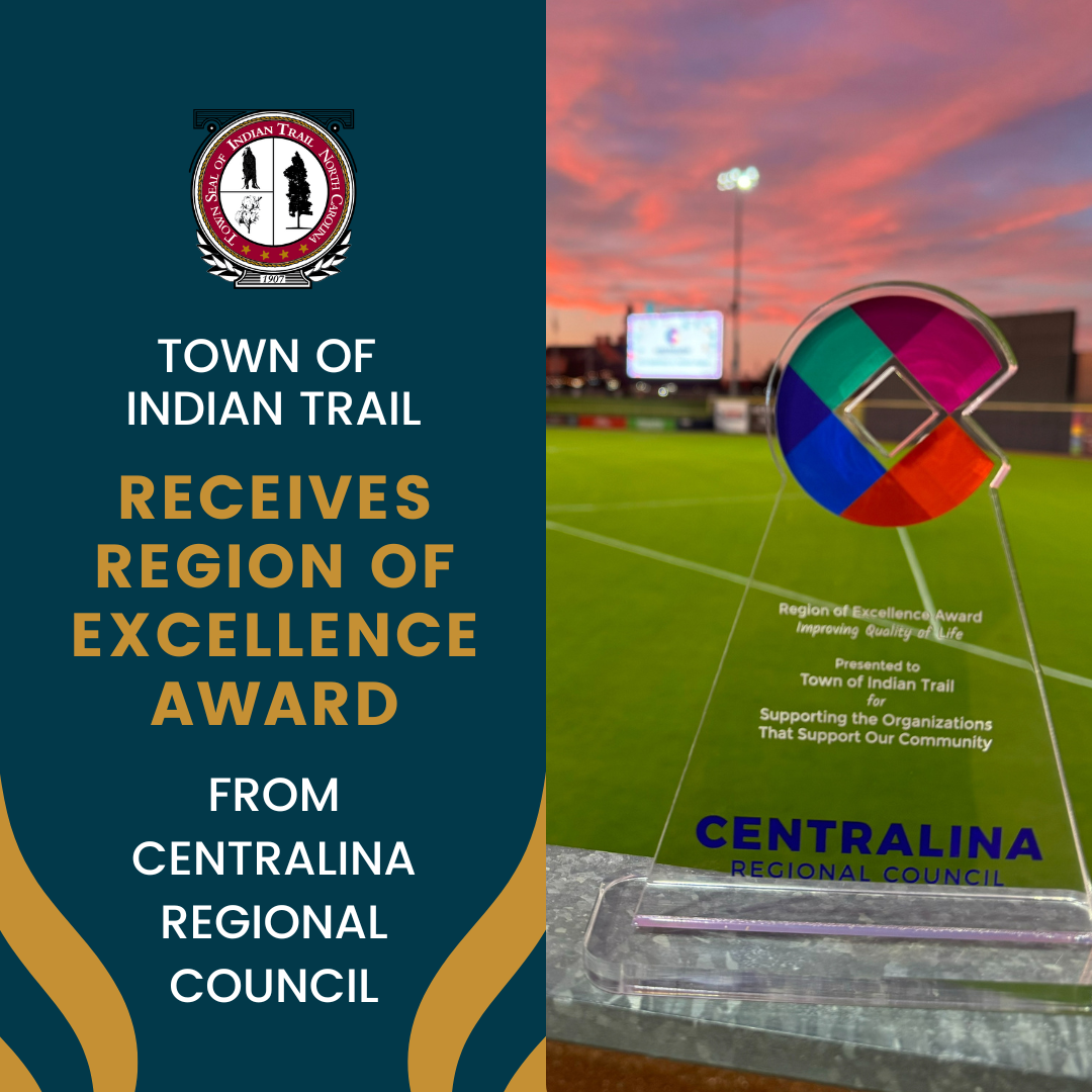 “The Town of Indian Trail is honored to receive a Region of Excellence award from the Centralina Regional Council,” said Adam McLamb, Assistant Town Manager/Director of Public Works. “The Town’s ARPA committee has worked tirelessly with community organizations to meet some of the most critical needs of our residents. This was a once-in-a-lifetime opportunity to provide valuable assistance to support the organizations that support our community. The Town Council’s commitment to Indian Trail and greater Union County will be felt for years to come.”